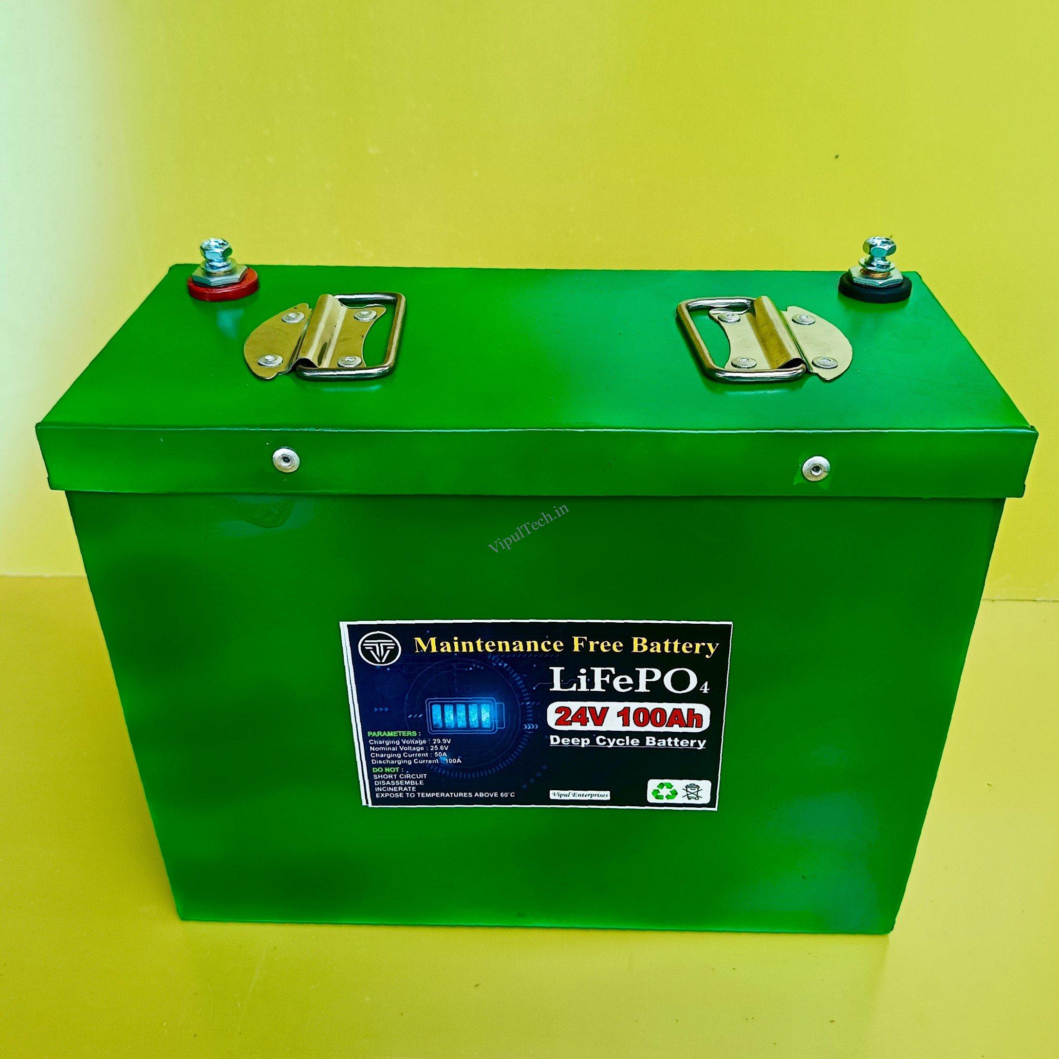 24V 100Ah Lithium Phosphate Battery (LiFePo4) (Battery Case: Metal)