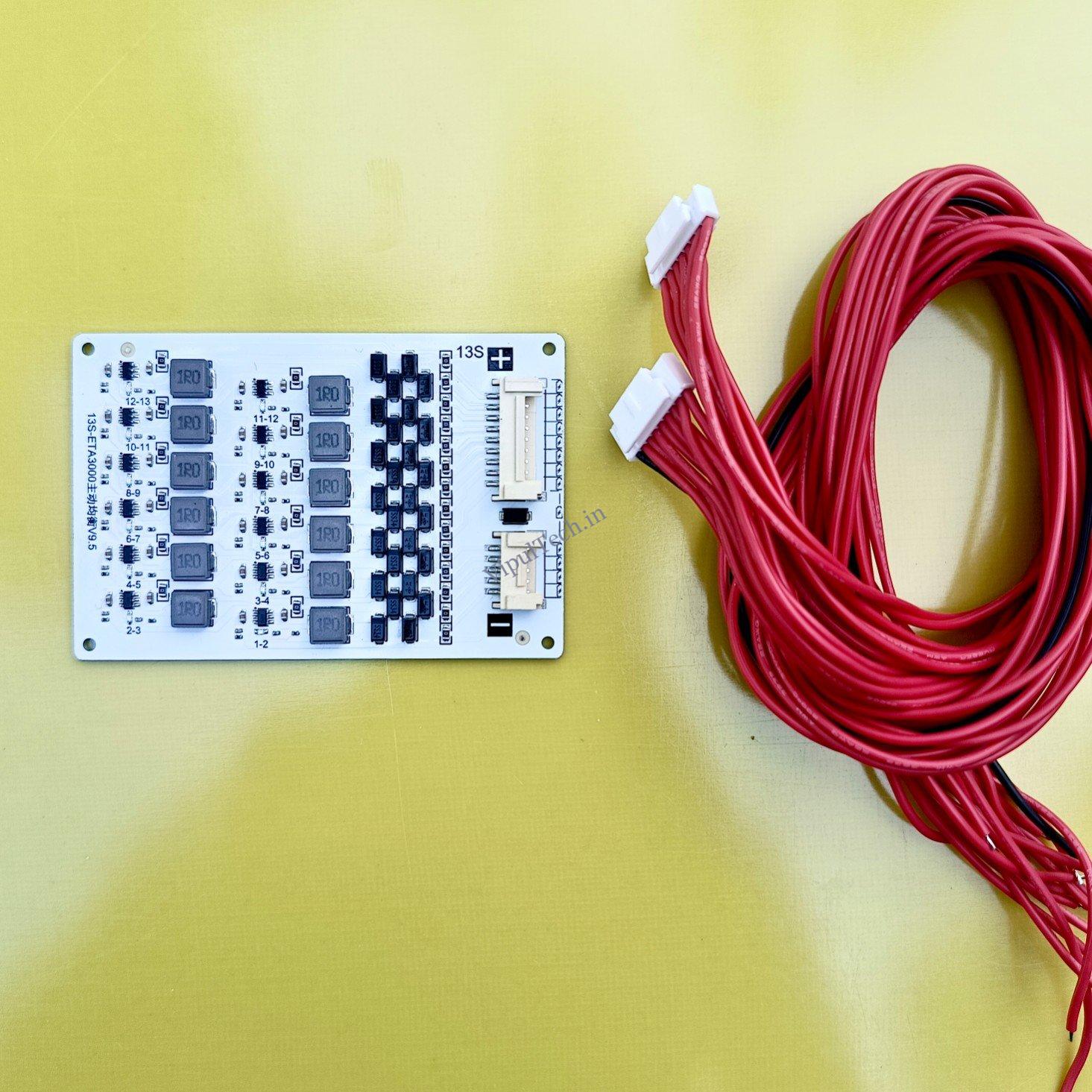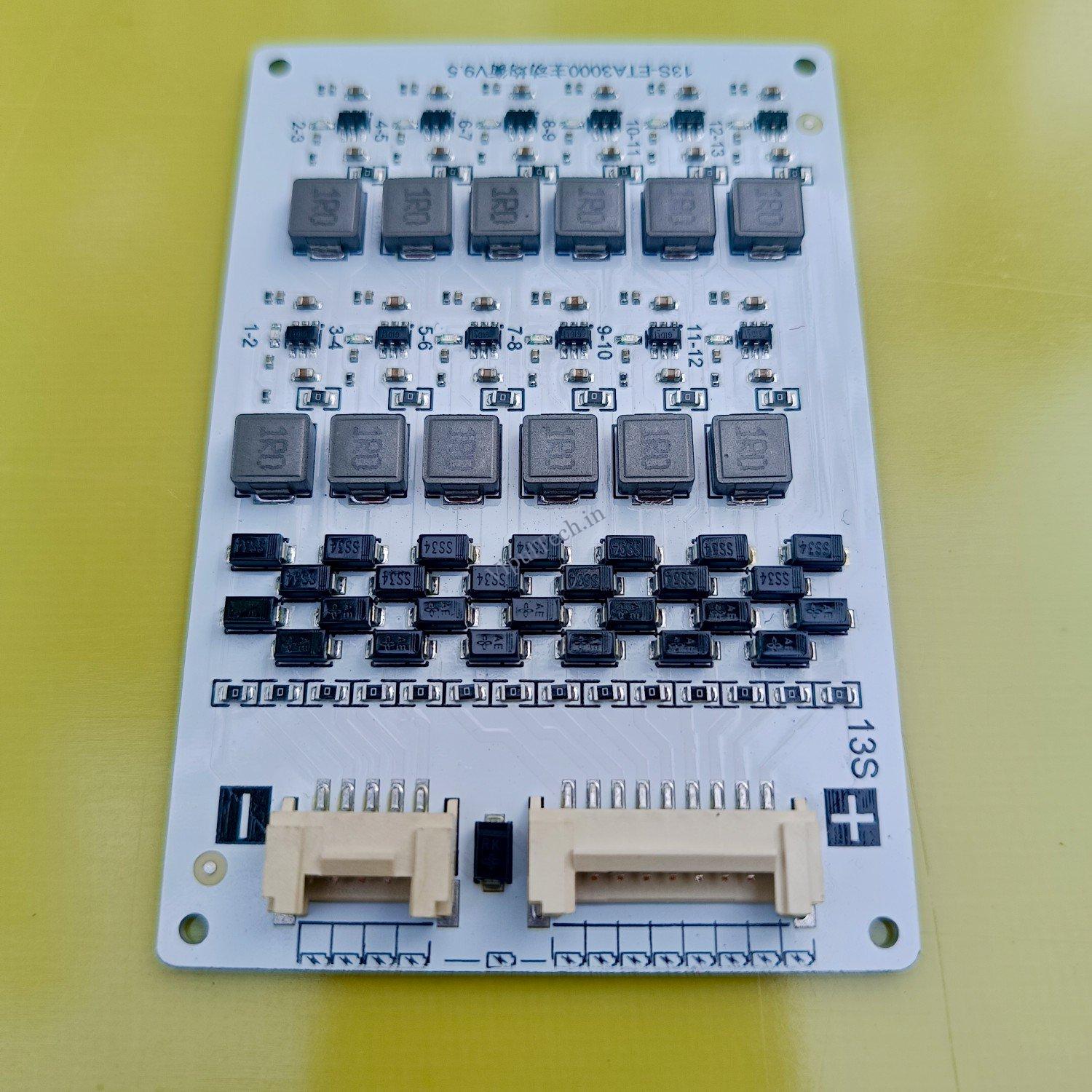 The 13S2A Active Balancer (NEEY) is a battery management solution designed for 13 series lithium-based battery packs. It supports 2A of current per cell for active balancing, which helps ensure that all cells in the battery pack are charged to the same voltage level. Active balancing optimizes battery performance by redistributing energy from higher-voltage cells to lower-voltage cells, thus improving the overall efficiency and lifespan of the battery pack. This balancer helps to prevent overcharging or deep discharging of individual cells, ensuring a safer and more reliable operation. The NEEY designation indicates the specific brand or model, offering efficient and effective cell balancing for applications such as energy storage systems, electric vehicles, and other lithium-based power solutions.