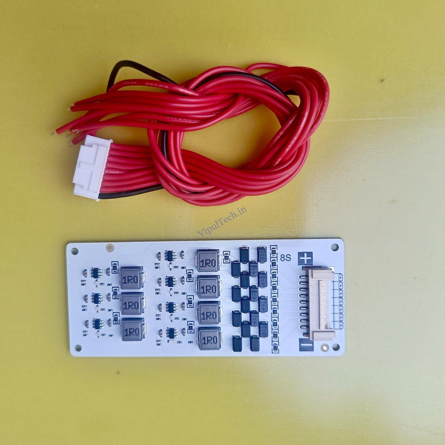 The 8S2A Active Balancer (NEEY) is a battery management solution designed for 8 series lithium-based battery packs. It supports 2A of current per cell for active balancing, which helps ensure that all cells in the battery pack are charged to the same voltage level. Active balancing optimizes battery performance by redistributing energy from higher-voltage cells to lower-voltage cells, thus improving the overall efficiency and lifespan of the battery pack. This balancer helps to prevent overcharging or deep discharging of individual cells, ensuring a safer and more reliable operation. The NEEY designation indicates the specific brand or model, offering efficient and effective cell balancing for applications such as energy storage systems, electric vehicles, and other lithium-based power solutions.